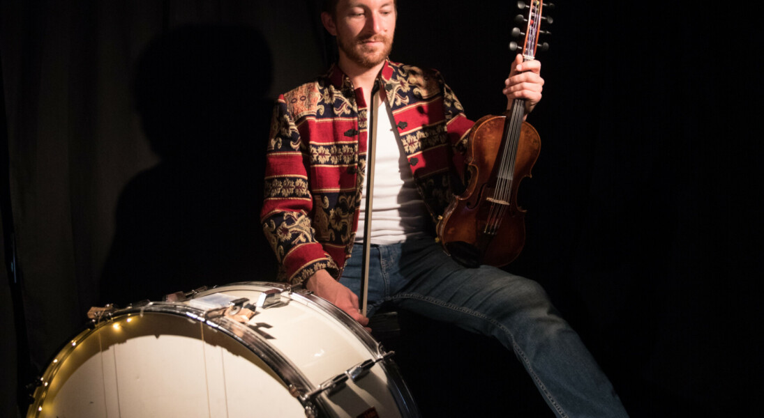 Frédéric Jouhannet : violons, grosse caisse, pédalier d’accordéon basse, objets sonores
