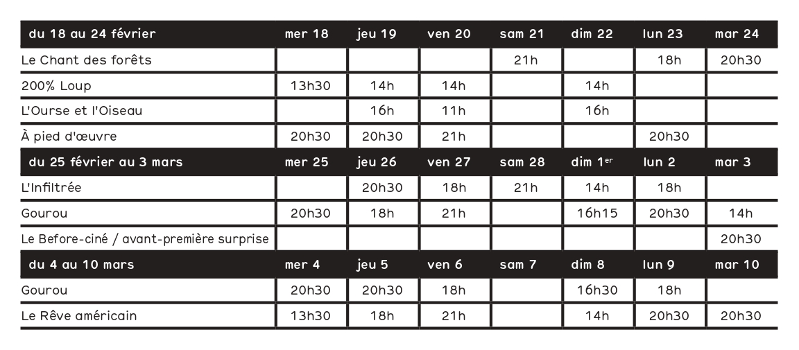 Télécharger le programme de vos séances du 18 février au 10 mars ICI
